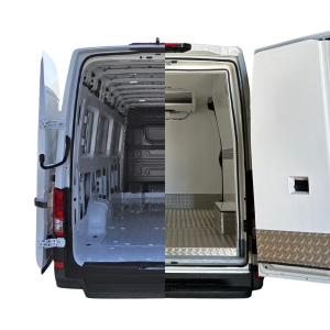 • Transformación isotermo al completo: Aislamiento térmico de 60mm para cumplir con la normativa ATP, panel realizado en molde para ajustar lo máximo posible el espacio de carga. Suelo con diferentes acabados elegidos por el cliente acorde a su sector. (Azul, rojo o gris, con antideslizante o liso). Descubre más sobre isotermos.